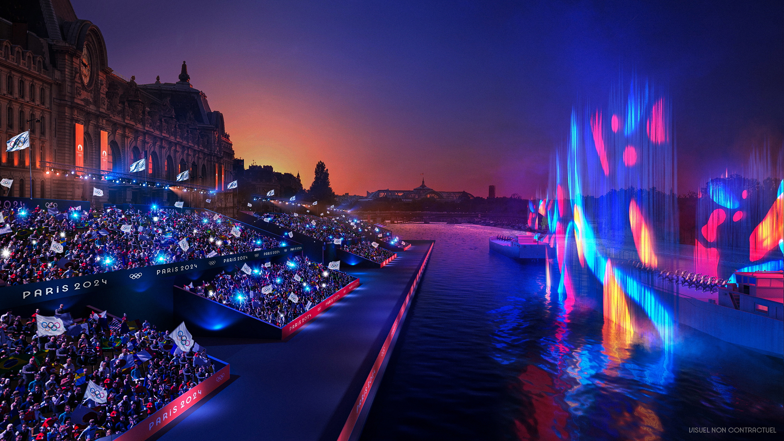 - Silver: visitors will enjoy a reserved seat in a grandstand on the banks of the Seine with a superb view of the Opening Ceremony. In the private hospitality, they will have access to a cocktail reception and live music will animate the evening.